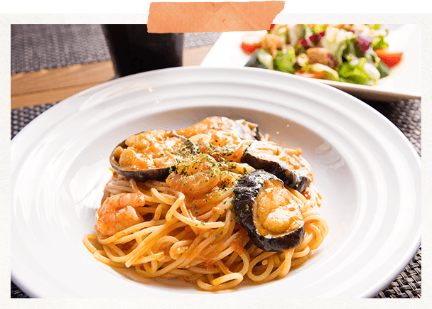 ランチのパスタやオムライス、カレーに加え、ドリアやハンバーグなど、 子供から大人まで楽しめるメニューをご用意。